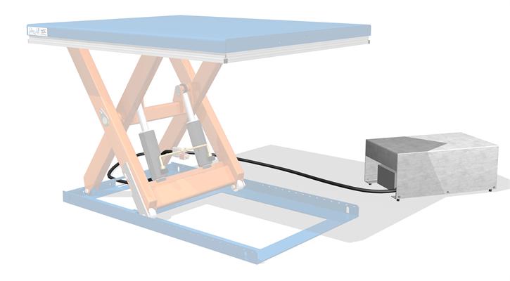 Erillinen ramppi voidaan sijoittaa nostopöydän lyhyelle sivulle. Varmista kaltevuuden sopivuus kuormalle. Ajoramppi sopii parhaiten matalarakenteisiin pöytiin.